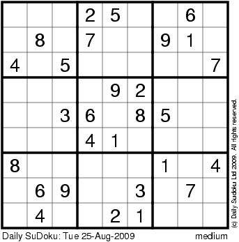 The Daily SuDoku: Tue 25-Aug-2009