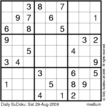 The Daily SuDoku: Sat 29-Aug-2009