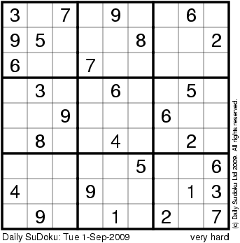 The Daily SuDoku: Tue 1-Sep-2009