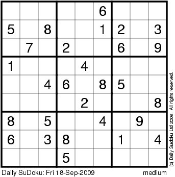 The Daily SuDoku: Fri 18-Sep-2009