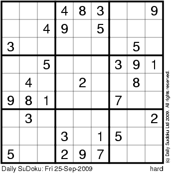 The Daily SuDoku: Fri 25-Sep-2009