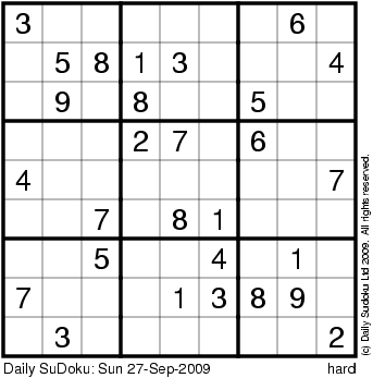 The Daily SuDoku: Sun 27-Sep-2009