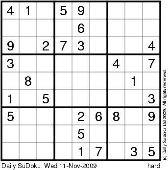 The Daily SuDoku: Wed 11-Nov-2009