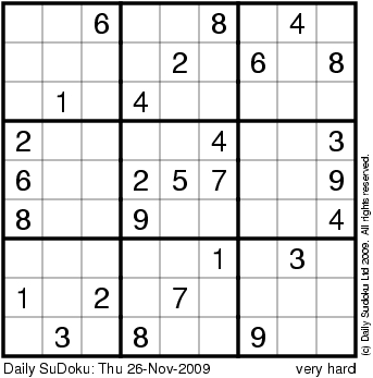 The Daily SuDoku: Thu 26-Nov-2009