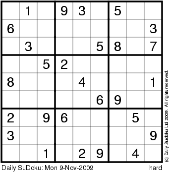 The Daily SuDoku: Mon 9-Nov-2009