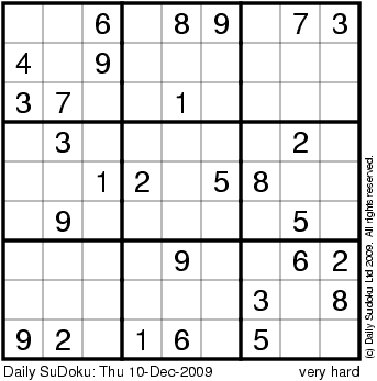The Daily SuDoku: Thu 10-Dec-2009