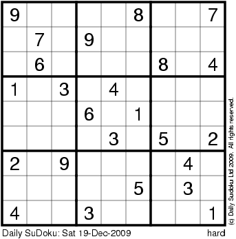The Daily SuDoku: Sat 19-Dec-2009