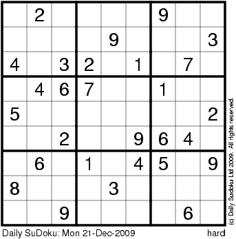 The Daily SuDoku: Mon 21-Dec-2009