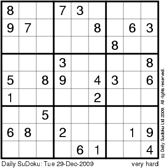 The Daily SuDoku: Tue 29-Dec-2009
