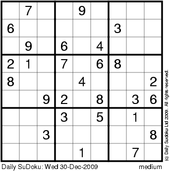 The Daily SuDoku: Wed 30-Dec-2009