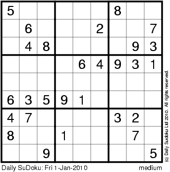 The Daily SuDoku: Fri 1-Jan-2010