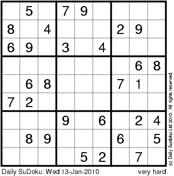 The Daily SuDoku: Wed 13-Jan-2010