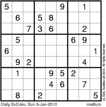The Daily SuDoku: Sun 3-Jan-2010