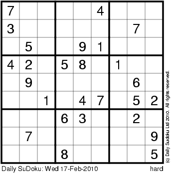 The Daily SuDoku: Wed 17-Feb-2010