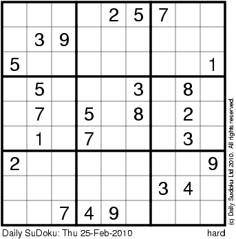The Daily SuDoku: Thu 25-Feb-2010