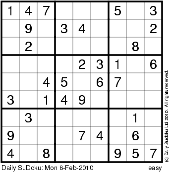 The Daily SuDoku: Mon 8-Feb-2010