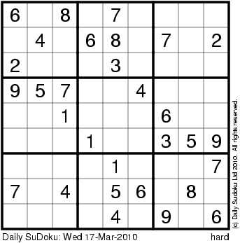 The Daily SuDoku: Wed 17-Mar-2010