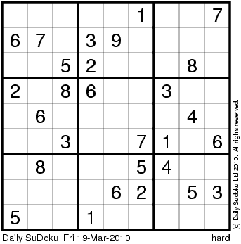The Daily SuDoku: Fri 19-Mar-2010