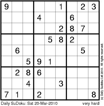 The Daily SuDoku: Sat 20-Mar-2010