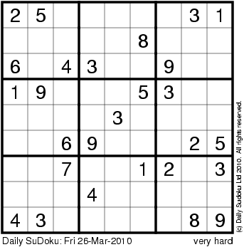 The Daily SuDoku: Fri 26-Mar-2010