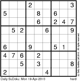 The Daily SuDoku: Mon 19-Apr-2010