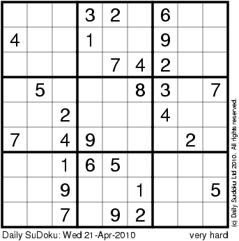 The Daily SuDoku: Wed 21-Apr-2010