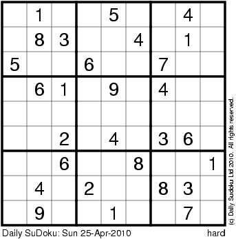 The Daily SuDoku: Sun 25-Apr-2010