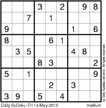 The Daily SuDoku: Fri 14-May-2010
