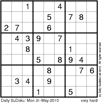 The Daily SuDoku: Mon 31-May-2010