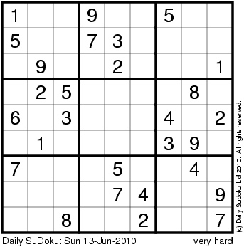 The Daily SuDoku: Sun 13-Jun-2010
