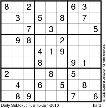 The Daily SuDoku: Tue 15-Jun-2010