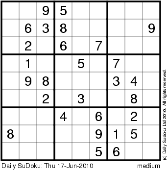 The Daily SuDoku: Thu 17-Jun-2010