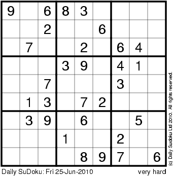 The Daily SuDoku: Fri 25-Jun-2010