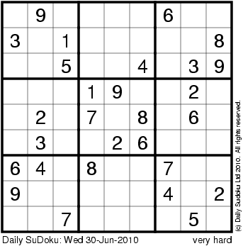 The Daily SuDoku: Wed 30-Jun-2010