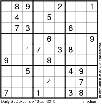 The Daily SuDoku: Tue 13-Jul-2010