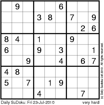 The Daily SuDoku: Fri 23-Jul-2010