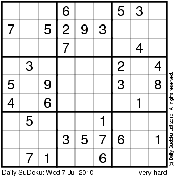 The Daily SuDoku: Wed 7-Jul-2010