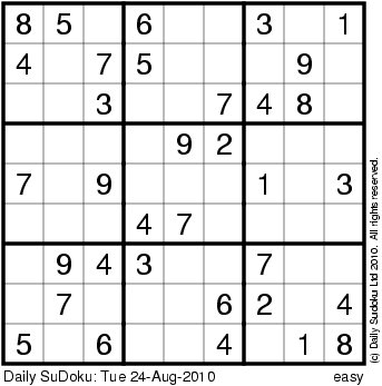 The Daily SuDoku: Tue 24-Aug-2010