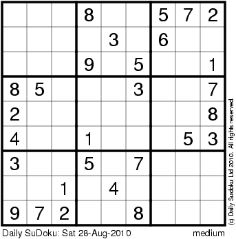 The Daily SuDoku: Sat 28-Aug-2010