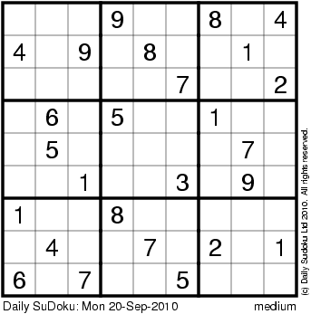 The Daily SuDoku: Mon 20-Sep-2010