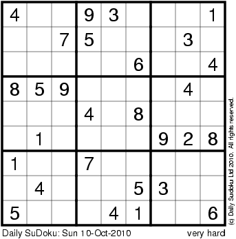 The Daily SuDoku: Sun 10-Oct-2010