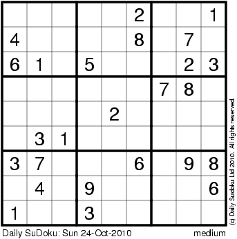 The Daily SuDoku: Sun 24-Oct-2010