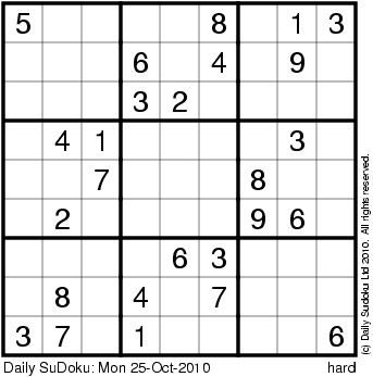 The Daily SuDoku: Mon 25-Oct-2010