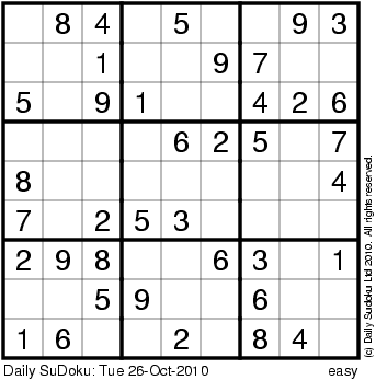 The Daily SuDoku: Tue 26-Oct-2010