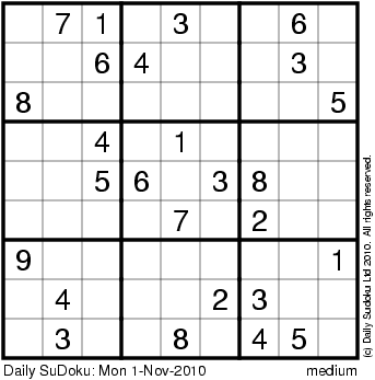 The Daily SuDoku: Mon 1-Nov-2010