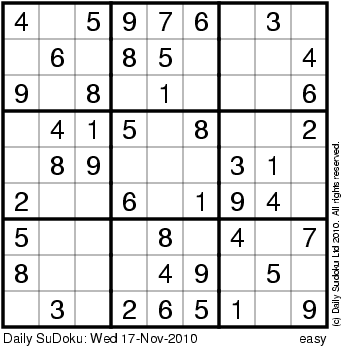The Daily SuDoku: Wed 17-Nov-2010