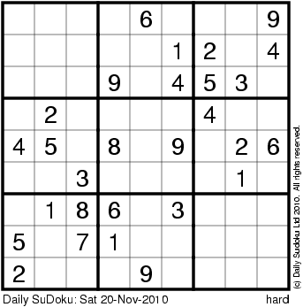 The Daily SuDoku: Sat 20-Nov-2010