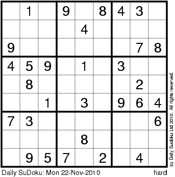The Daily SuDoku: Mon 22-Nov-2010