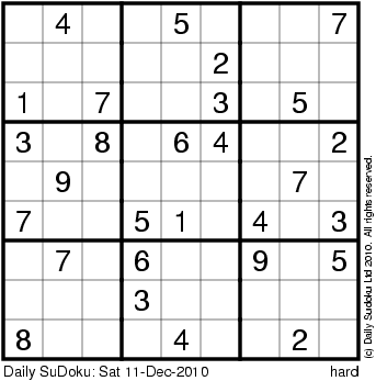 The Daily SuDoku: Sat 11-Dec-2010