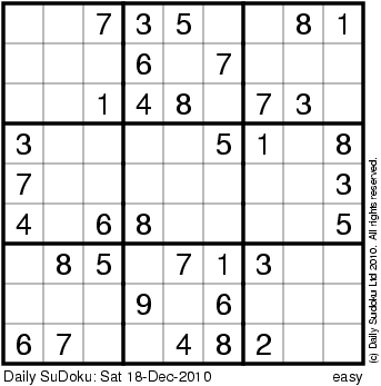 The Daily SuDoku: Sat 18-Dec-2010